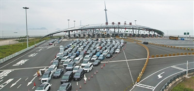 港珠澳大桥上,无数车辆正通过珠海公路港口入境。黎钊德摄(东说念主民视觉)