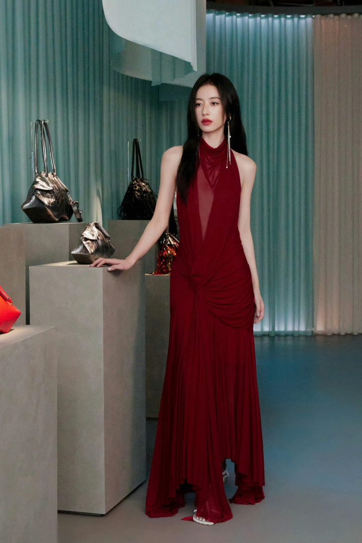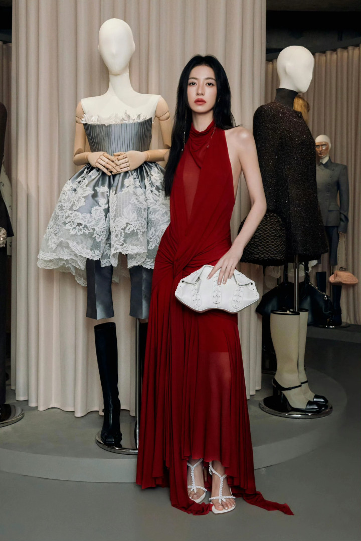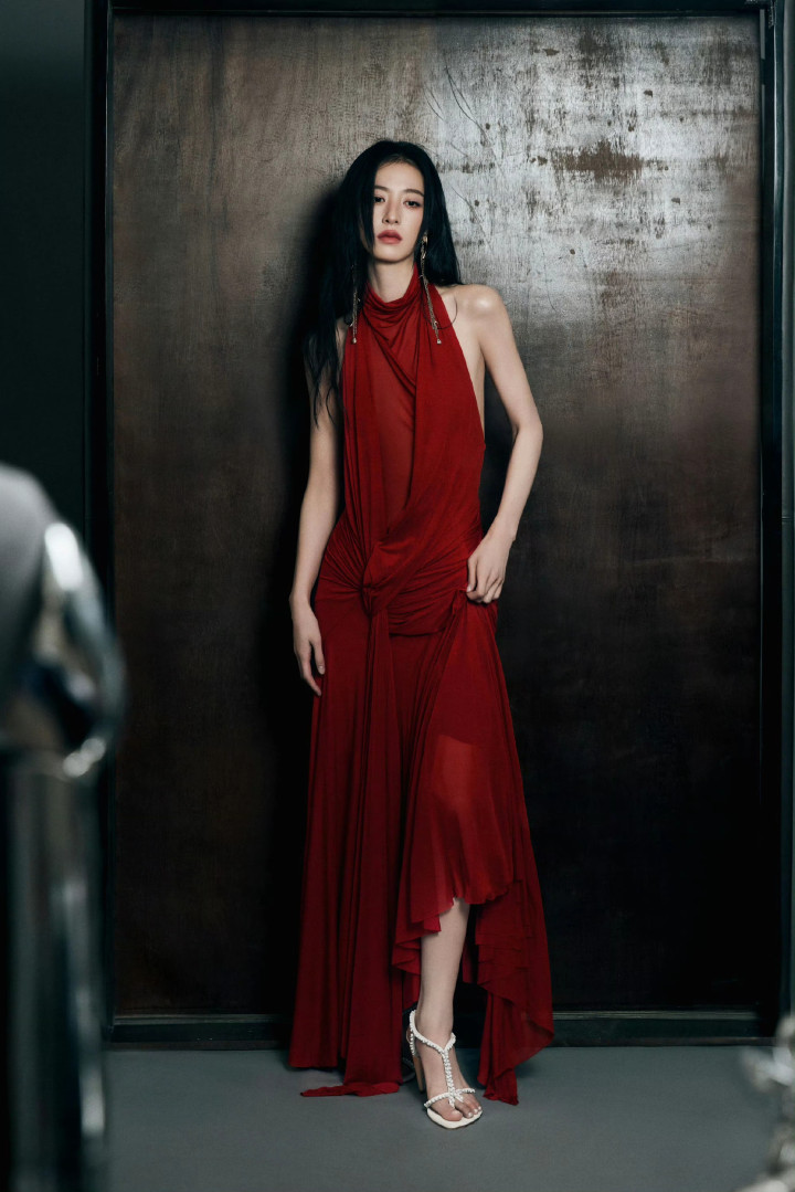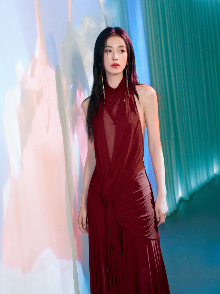 澳门信誉网赌城 周雨彤 修身红裙 光洁好意思背