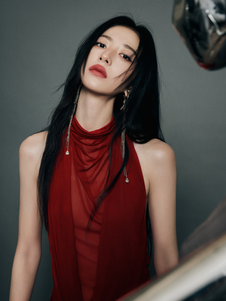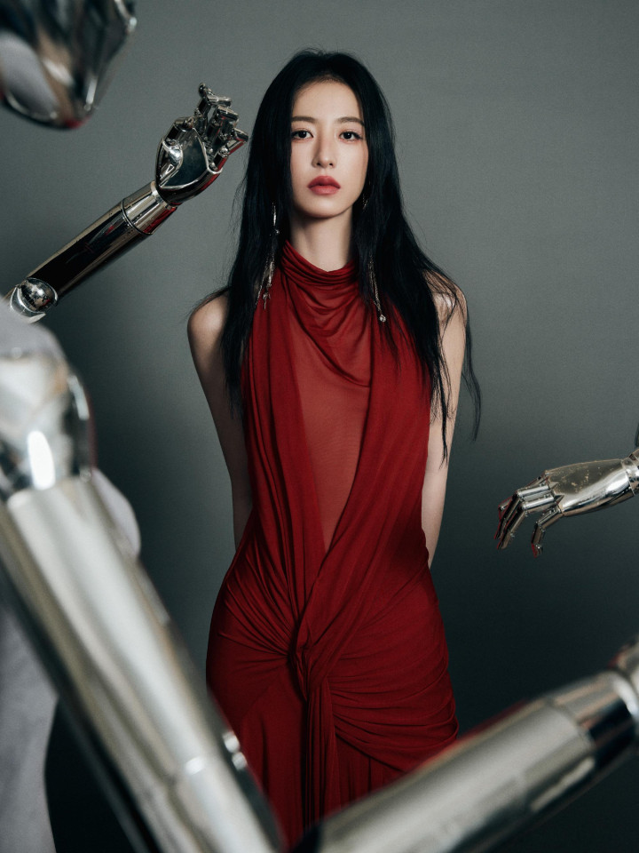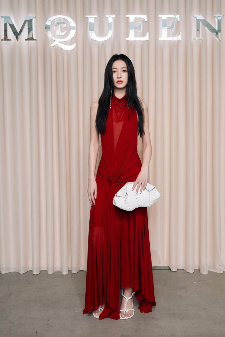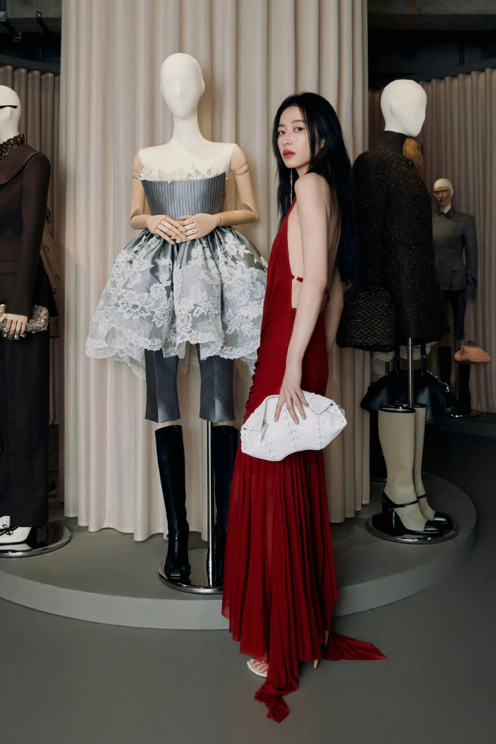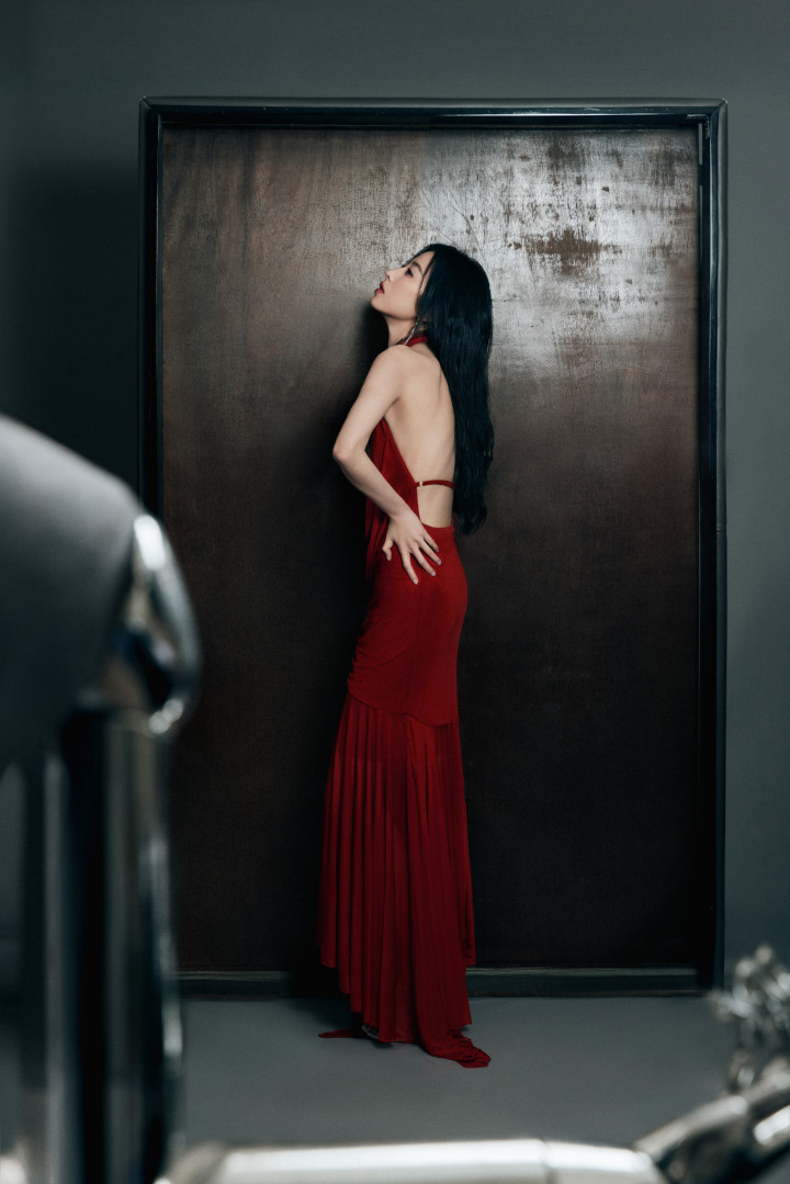 澳门信誉网赌城 周雨彤 修身红裙 光洁好意思背