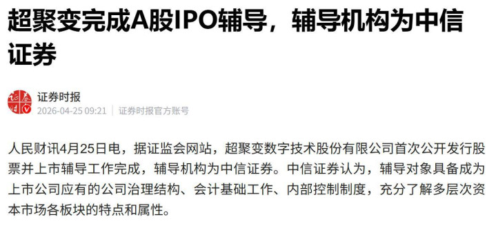 今天,多家媒体转发证监会音书,超聚变公司完成初度公开拓行股票并上市指导责任。